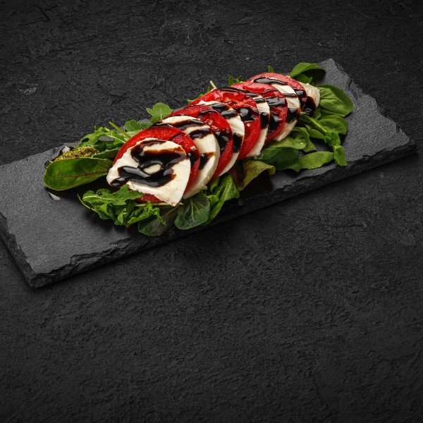Сыр моцарела Томаты Микс салата Соус бальзамический Соус песто